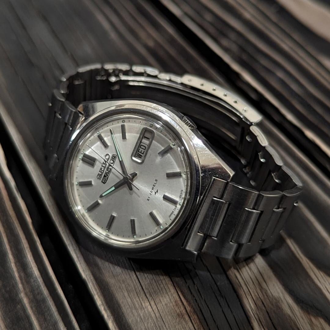 1974年7月に精工舎亀戸工場により生産された70系ムーブメント搭載、プラ風防の『5アクタス』