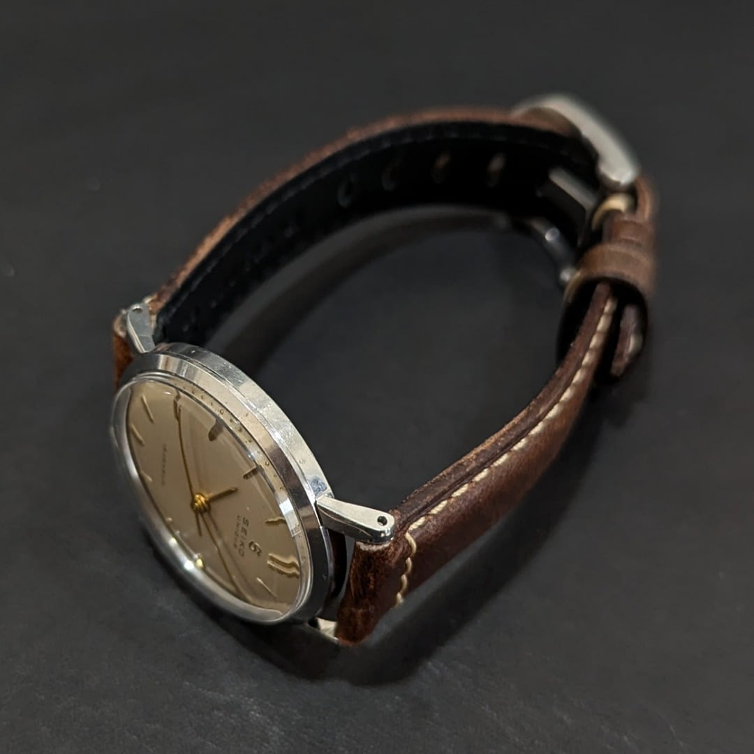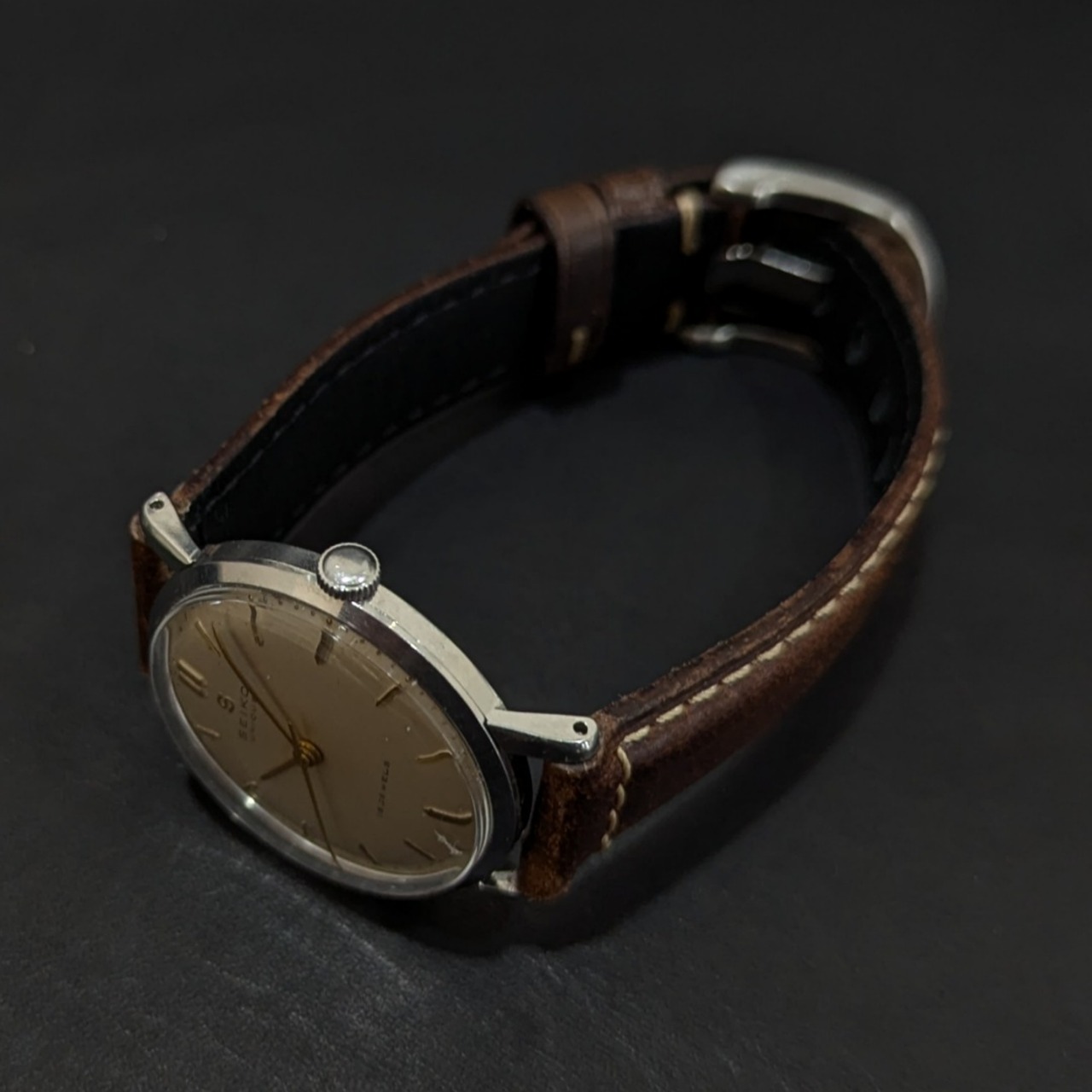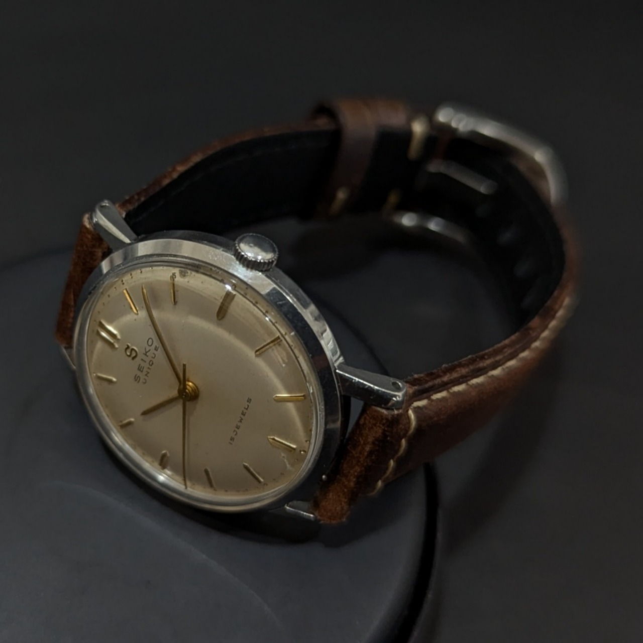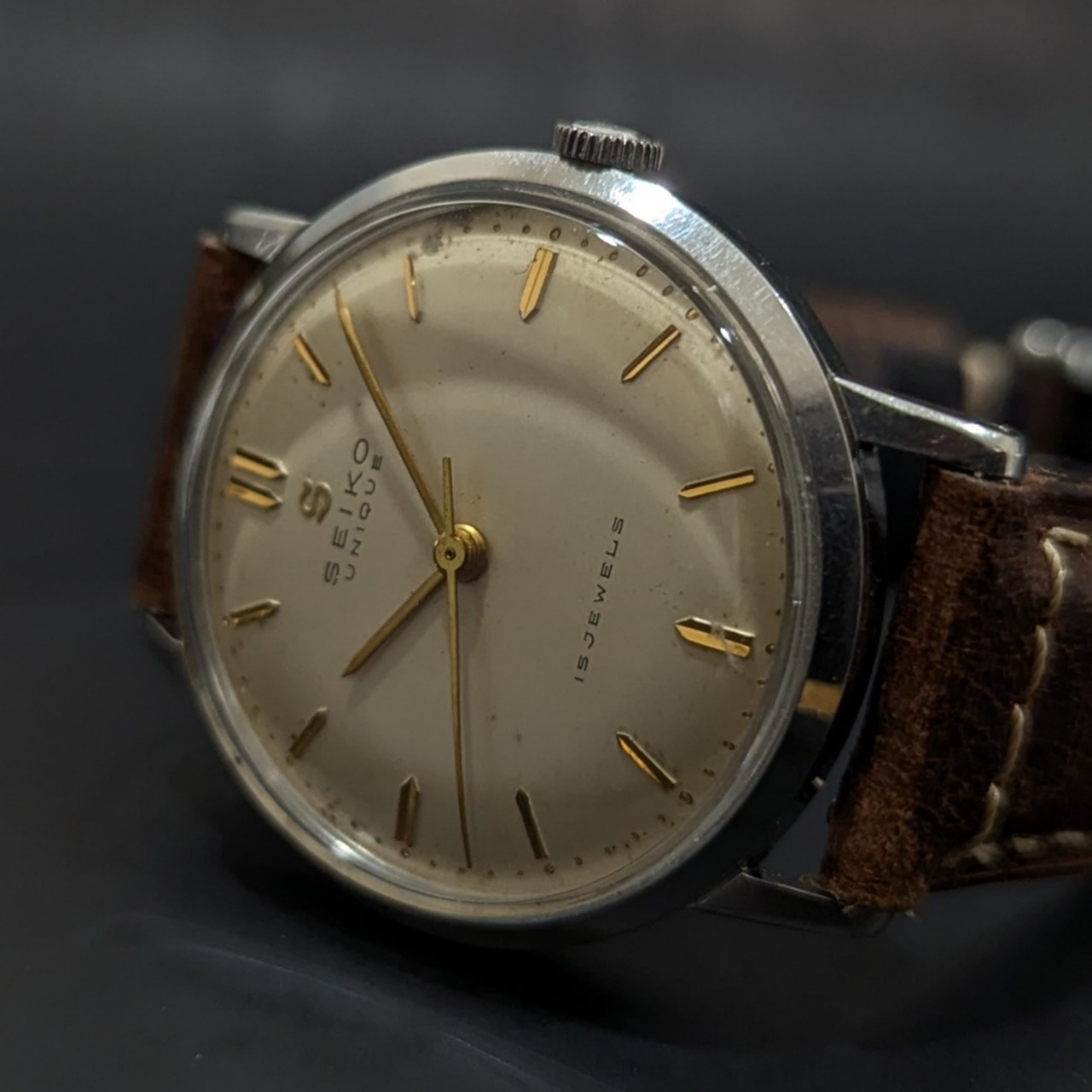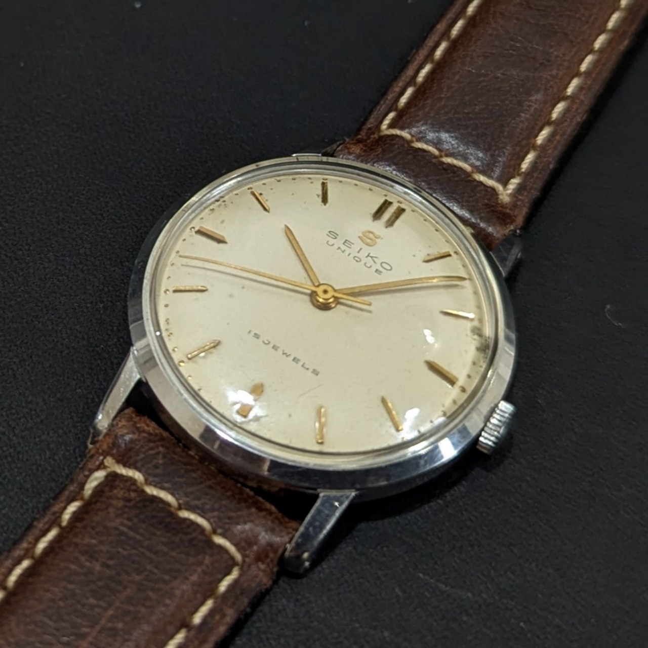 【UNIQUE】SEIKO/セイコー ユニーク Sマーク 15石 14044 機械式 手巻き時計 精工舎亀戸工場 1957年ごろ製造 アンティークウォッチ 中三針 イタリアンレザーベルト付き【u14044】 | LEVEL7 Antique Watch館