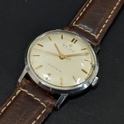国内の腕時計メーカーの転換期とも言える時期に生産された古き良き機械式時計です。チラネジテンプ、耐震機能のない貴重なムーブメントを搭載しています。 そのため、衝撃にとても弱いため、ご使用の際は、ご注意が必要でございます。