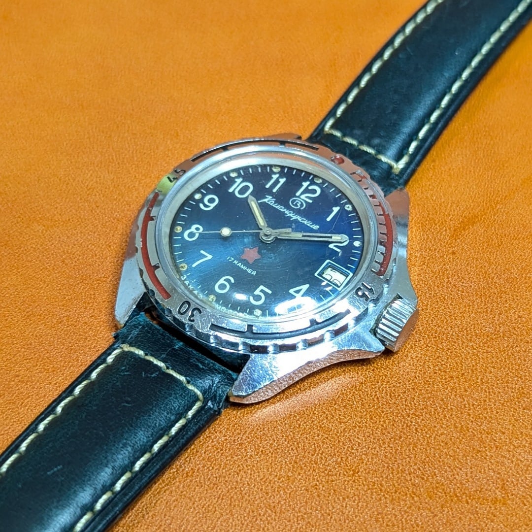 【ЗАКАЗ МО СССР】BOSTOK/BOSTOK(ボストーク)Komandirskie/コマンダスキー CCCP/USSR ソビエトミリタリーウォッチ 1980年代 アンティークウォッチ/ヴィンテージウォッチ ブルー文字盤 メンズウォッチ イタリアンレザー 陸軍 機械式 手巻き 腕時【kmnd-bl1-7】