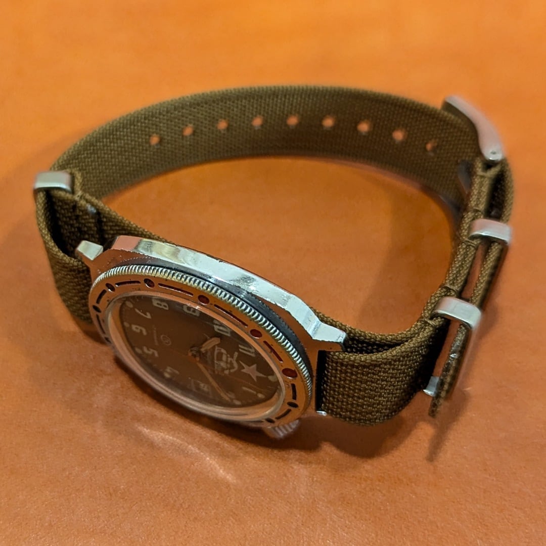 『Komandirskie/コマンダスキー』は、1960年代後半に、ソビエト連邦の海軍の指示により、開発された腕時計からの派生で、ソ連軍人のために作られた戦場と言う過酷な状況下で、使用できる本格派ミリタリーウォッチとして普及して行きました。