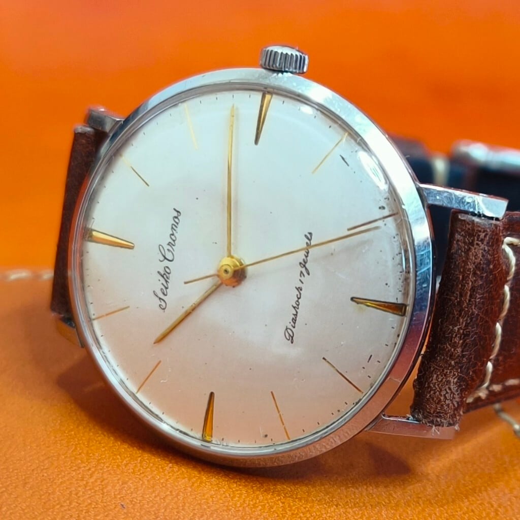 クロノスは、キングセイコーファーストモデルの基礎ともなり、クラウンと共にSEIKOの腕時計を世界に広める品質を確率したモデルと言っても過言ではないだろう。