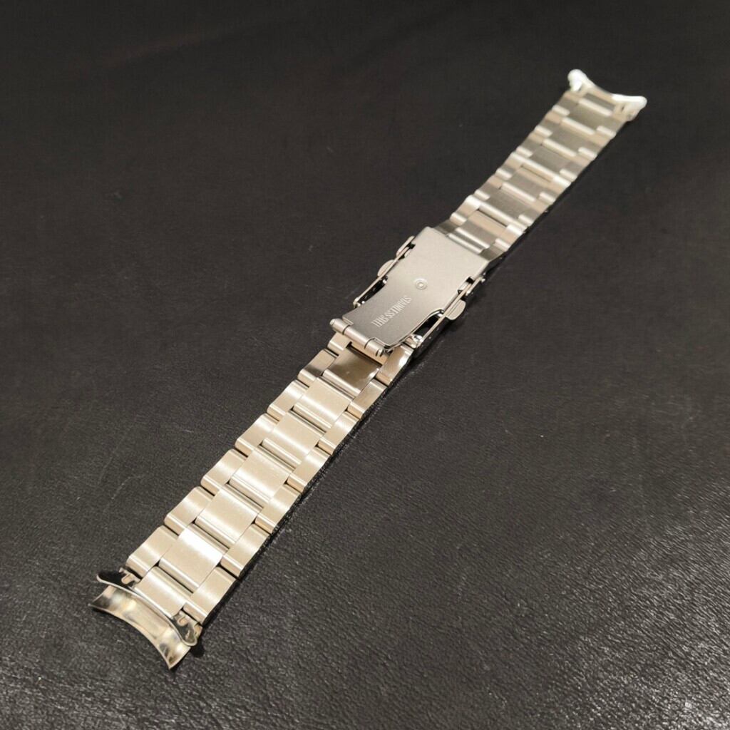 エンドピースが弓カン仕様のセットとなるステンレスベルトです。 バックルには、ダブルセーフティーを採用したオーソドックスな仕様となります。