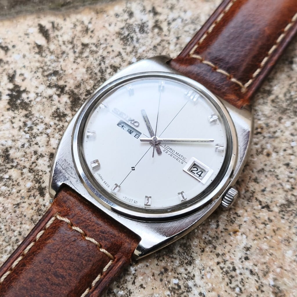 This is an early model Lord Matic equipped with a 56-series movement, produced by Seikosha's Suwa factory in June 1968.