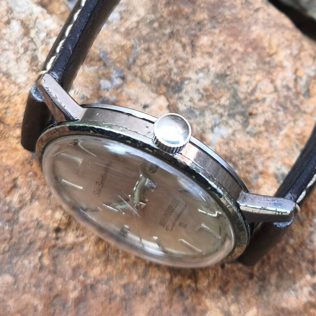 ケースのメッキ剥離、風防の劣化などはございますが、裏ブタの刻印はシッカリと残った個体となります。