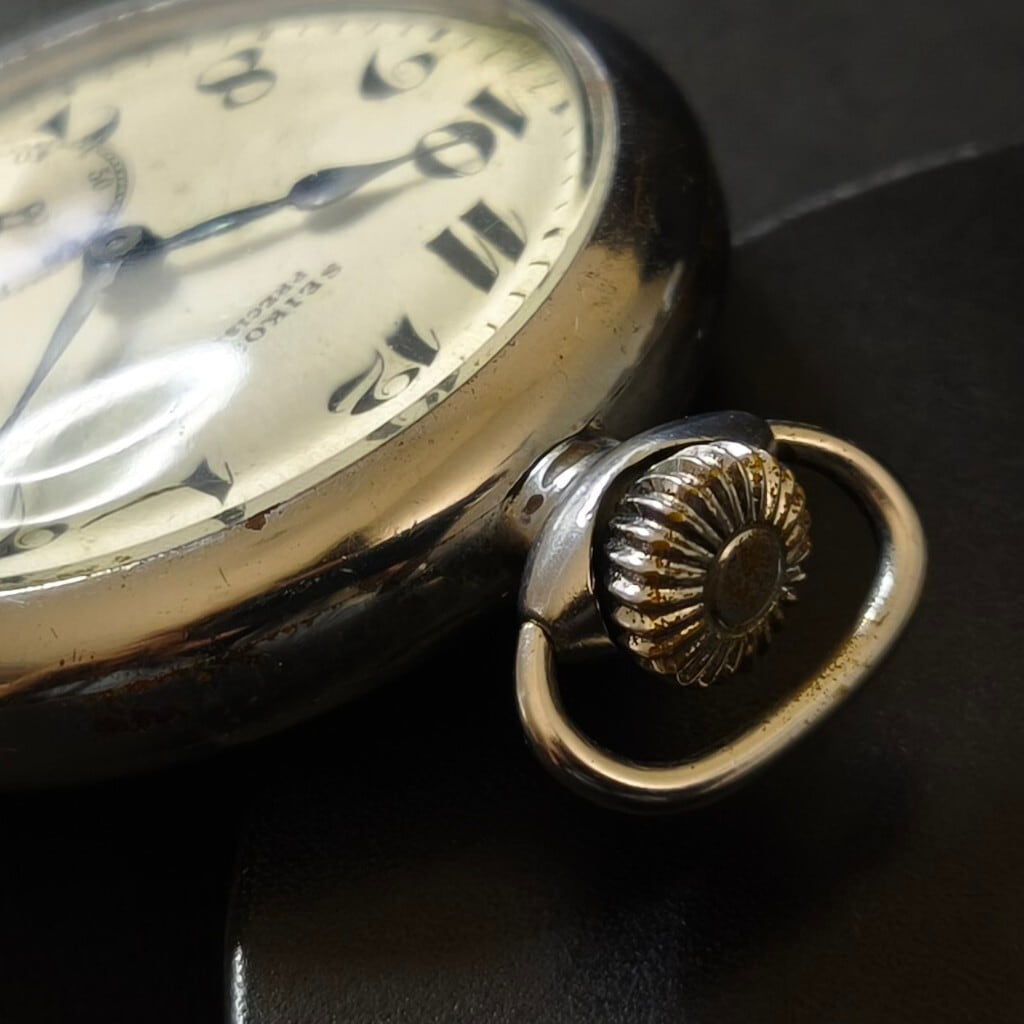 【19SEIKO】【7石】SEIKO/セイコー SEIKOロゴ PRECISION/プレシジョン 鉄道時計/懐中時計 機械式 手巻き時計 1945年~1940年後半に製造された懐中時計 動作確認済み クリーニング/ケース磨き/風防磨き済み アンティークウォッチ【seiko7-11】
